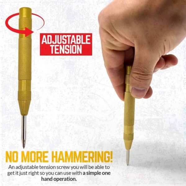 - Ten wydajny przebijak sprężynowy wykona zauważalny odcisk nawet w najtwardszych metalach.