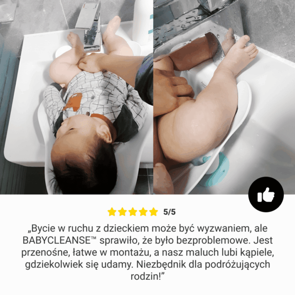 Przyssawki mocno trzymają się umywalki, nie trzeba się schylać. Nasze dziecko uwielbia być w wodzie, a nam podoba się, jak łatwe to jest dzięki temu inteligentnemu wsparciu.
