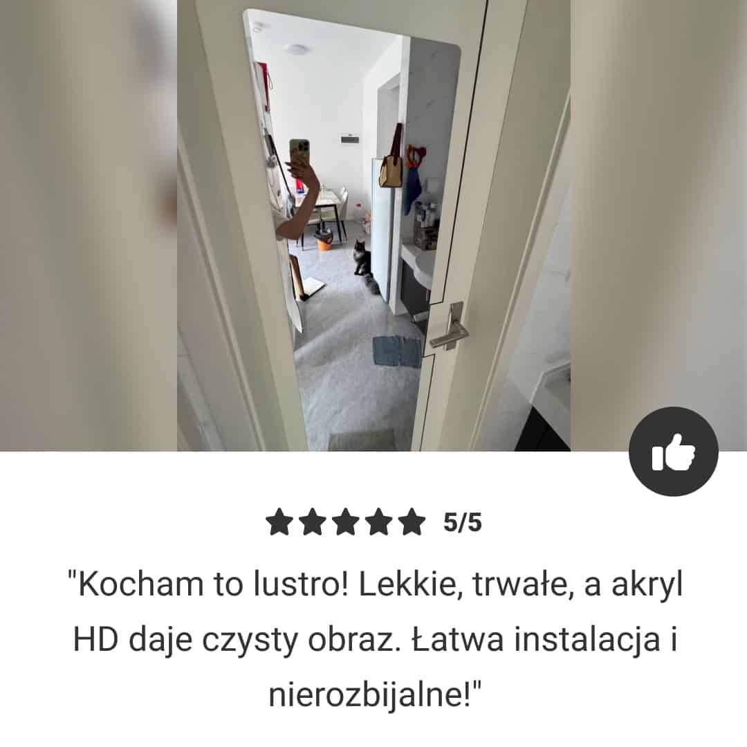 "To lustro jest idealne! Lekkie, wytrzymałe i łatwe do zamontowania wszędzie. Super czyste odbicie!"