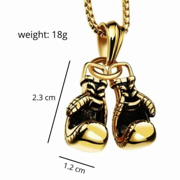 Polerowane rękawice bokserskie są lekkie i wygodnie układają się na szyi, zawieszone na pięknym złotym łańcuszku.