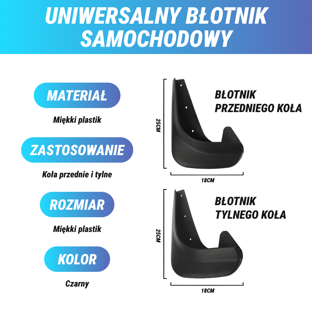 - Zawiera 4 chlapacze: 2 przednie i 2 tylne