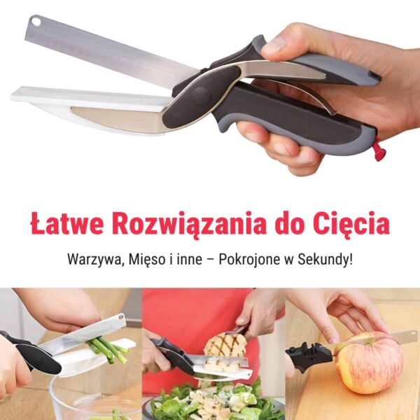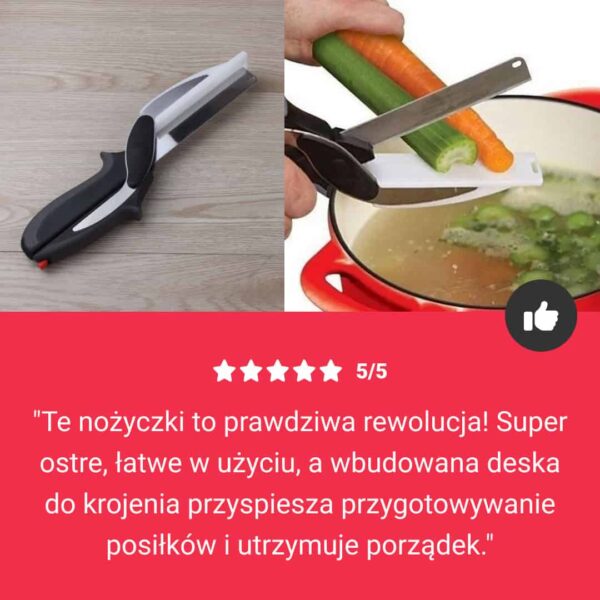 "Te nożyczki są idealne do szybkiego krojenia warzyw. Uwielbiam wbudowaną deskę!"