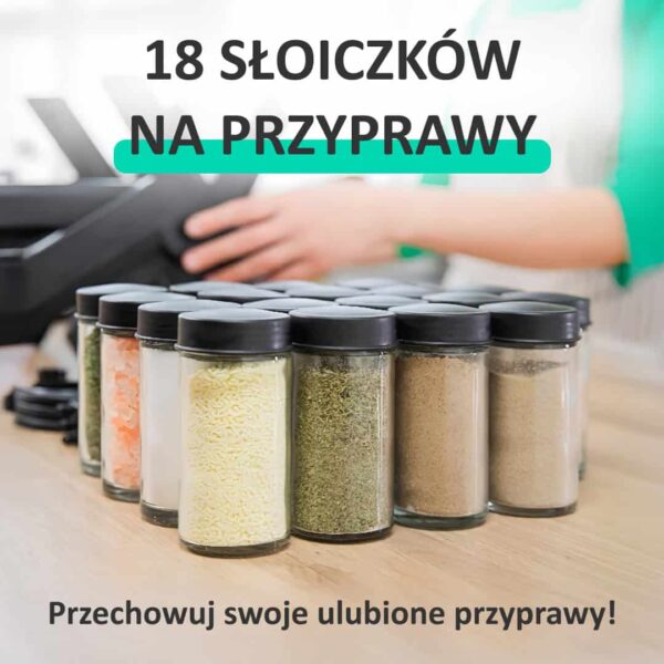 - Zawiera 18 szklanych słoików na przyprawy i etykiety.