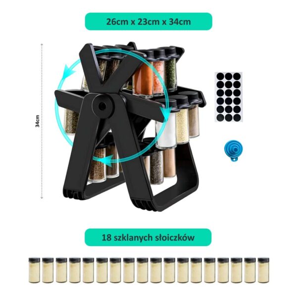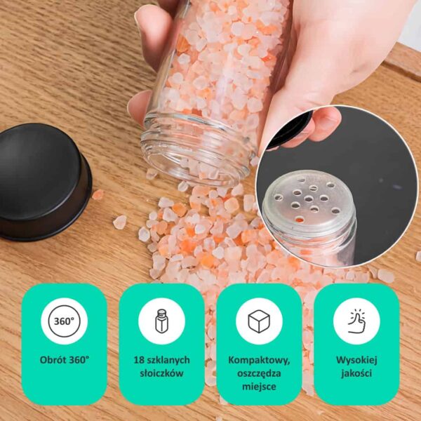 - Szybki dostęp: Obrót o 360° zapewnia pełny widok wszystkich przypraw.
