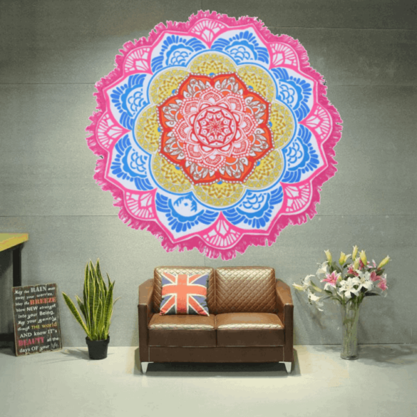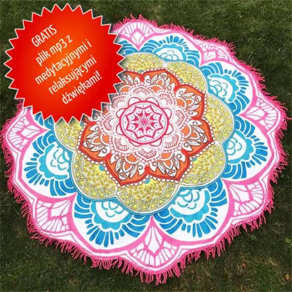 - Możesz zabrać gobelin z mandalą w dowolne miejsce i stworzyć przestrzeń tylko dla siebie. Kolory w projekcie są reprezentowane przez 7 czakr w naszym ciele. Są to czakra korony, trzeciego oka, gardła, serca, splotu słonecznego, czakra sakralna i podstawy.