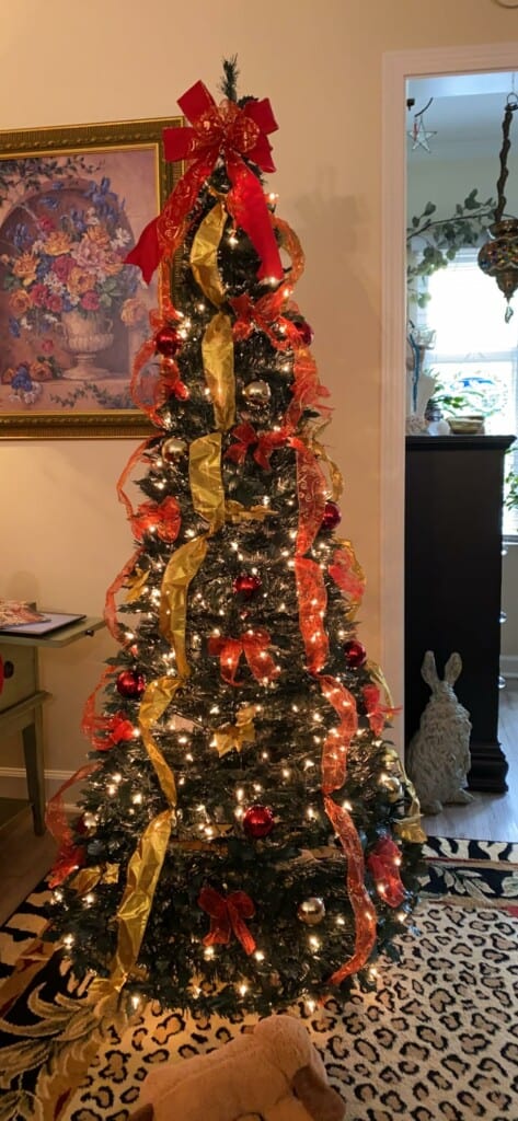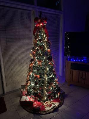 Po latach dużych, nieporęcznych sztucznych drzewek, mój mąż i ja mieliśmy dość. Jesteśmy po siedemdziesiątce i dźwiganie ciężkiego drzewka ze strychu stało się dla nas kłopotliwe. Kiedy zobaczyłam tę choinkę, pomyślałam, że to zbyt piękne, aby mogło być prawdziwe, ale była intrygująca. Pokazałam ją mężowi i postanowiliśmy spróbować. Choinka dotarła szybko i w idealnym stanie. Instrukcje były bardzo łatwe do naśladowania, a choinka została złożona w 5 minut. Nie pamiętam, kiedy ostatnio byłam pod takim wrażeniem! Jest piękna dzięki migoczącym światełkom, wstążkom, kokardkom i bombkom!