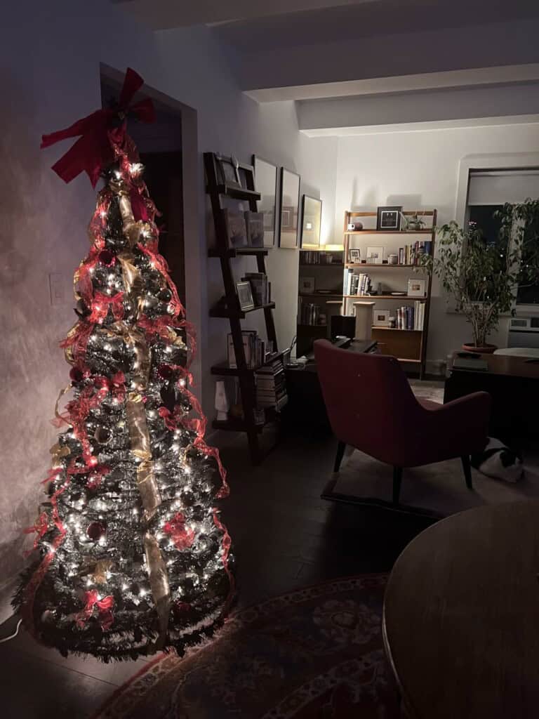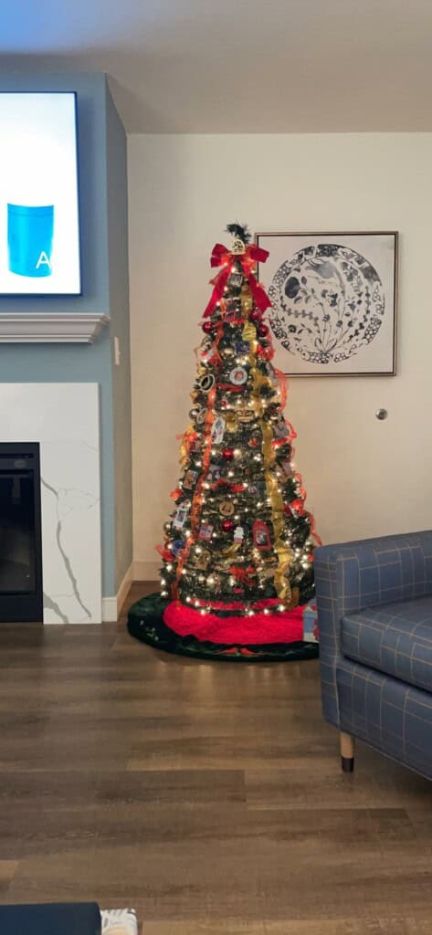 Nie będę jej używać do grudnia, ale musiałam ją przetestować już w momencie dostawy, aby sprawdzić, czy mi się podoba. SPODOBAŁA MI SIĘ! Będę musiała tylko dodać kilka osobistych dekoracji i spróbować znaleźć przejściówkę, która sprawi, że światła będą migotać, ale poza tym jest idealna.