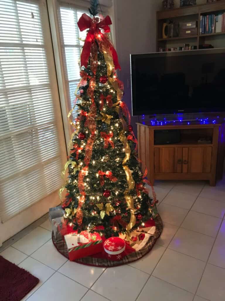 To idealne drzewko dla nas, jesteśmy seniorami i wspinanie się na strych, aby zdemontować naszą dużą choinkę, nie wchodzi już w grę. Drzewko było już złożone, a wstążka wyprostowana w mniej niż 15 minut. Podoba mi się ta choinka.
