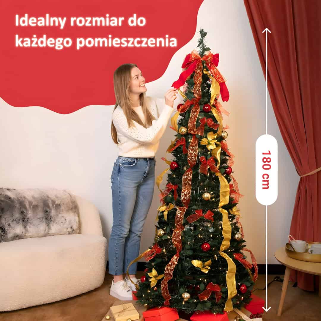 Okej, więc jestem starszy (nienawidzę mówić starszy) i każdego roku wyciągałem nieporęczną, DUŻĄ, sztuczną choinkę i spędzałem godziny dekorując ją samemu (bez dzieci, bez pomocy). Światełka w końcu przestały działać, więc musiałam też dodać lampki na sznurku. Potem zobaczyłam tę wyskakującą choinkę i postanowiłem spróbować czegoś prostszego i mniej skomplikowanego. I szczerze mówiąc, uwielbiam ją. Zajęło mi dwie próby, aby zrobić to poprawnie i spędziłam tylko dziesięć minut na wiązaniu kokardek i wstążek i… wow! Stoi, jest piękna i nie mógłbym być szczęśliwszy. Światełka naprawdę ją ożywiają, a pod spodem jest mnóstwo miejsca na małe prezenty, co jest dodatkowym plusem. Użyłem mojej zwykłej osłony na choinkę, która sprawdziła się idealnie. Nie sądzę, że utrzymałaby ciężką ozdobę choinkową, ale szczerze mówiąc, nie obchodzi mnie to. Duża, piękna kokarda ma klasę i łatwo ją upiąć, aby zaakcentować czubek. Chociaż cena trochę mnie odstraszała, teraz uważam, że jest tego warta. Pudełko, w którym została dostarczona, jest idealne do jej przechowywania. Polecam tę choinkę każdemu, kto jest zmęczony spędzaniem godzin na rozstawianiu choinki, a następnie godzinami na jej zdejmowaniu.