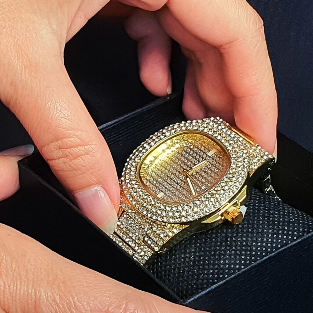 Jest to bardzo ładny i dobrze wykonany zegarek! Czuję się z nim jak milion dolarów! Uwielbiam dbałość o szczegóły i małe diamenty mieniące się w słońcu!